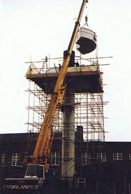 Scaffolding was erected over the first weekend; the existing tank cut up and removed on the Monday and Tuesday.